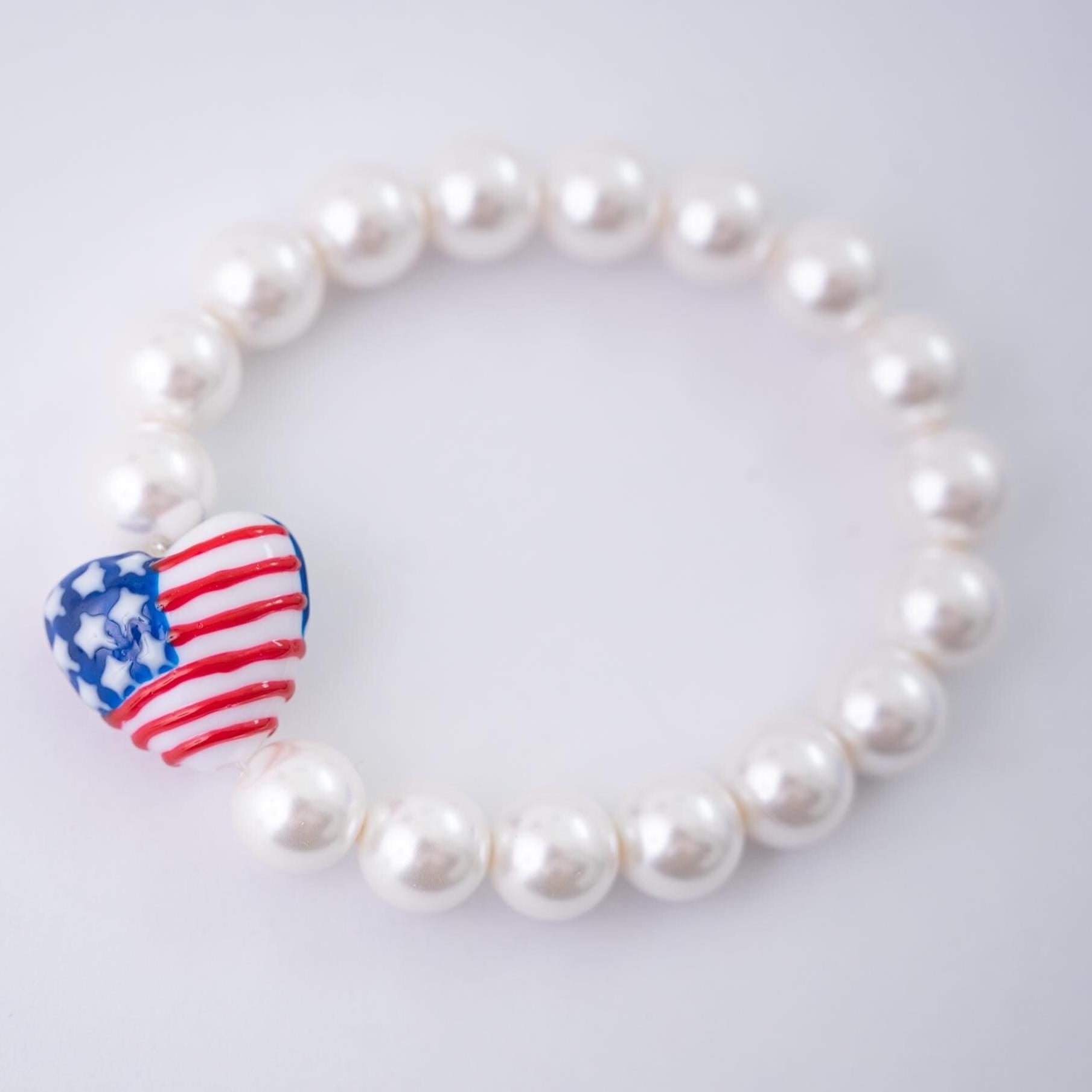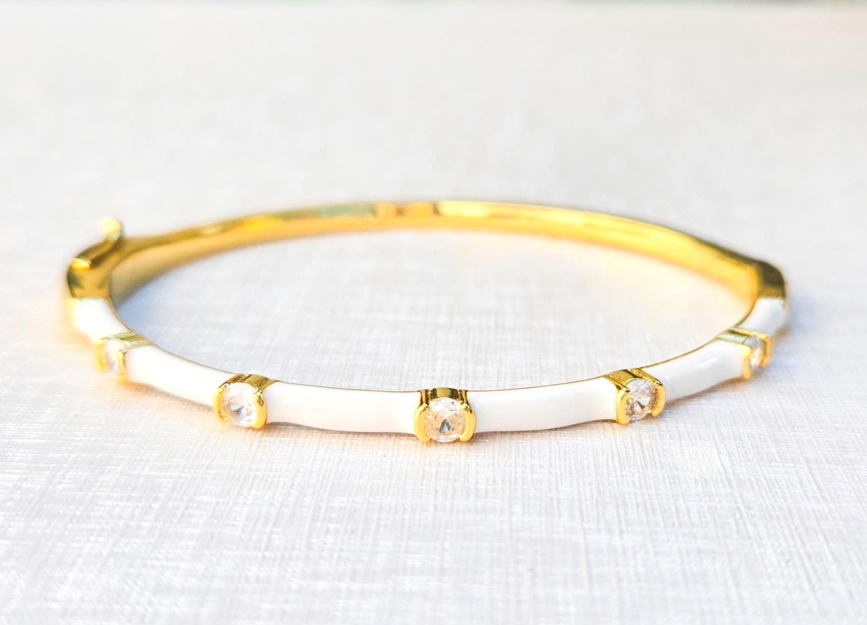 The Camille Chinoiserie Painted Bead Stretchy Bracelet with Brushed Gold Ball - Pink Floral Colorway