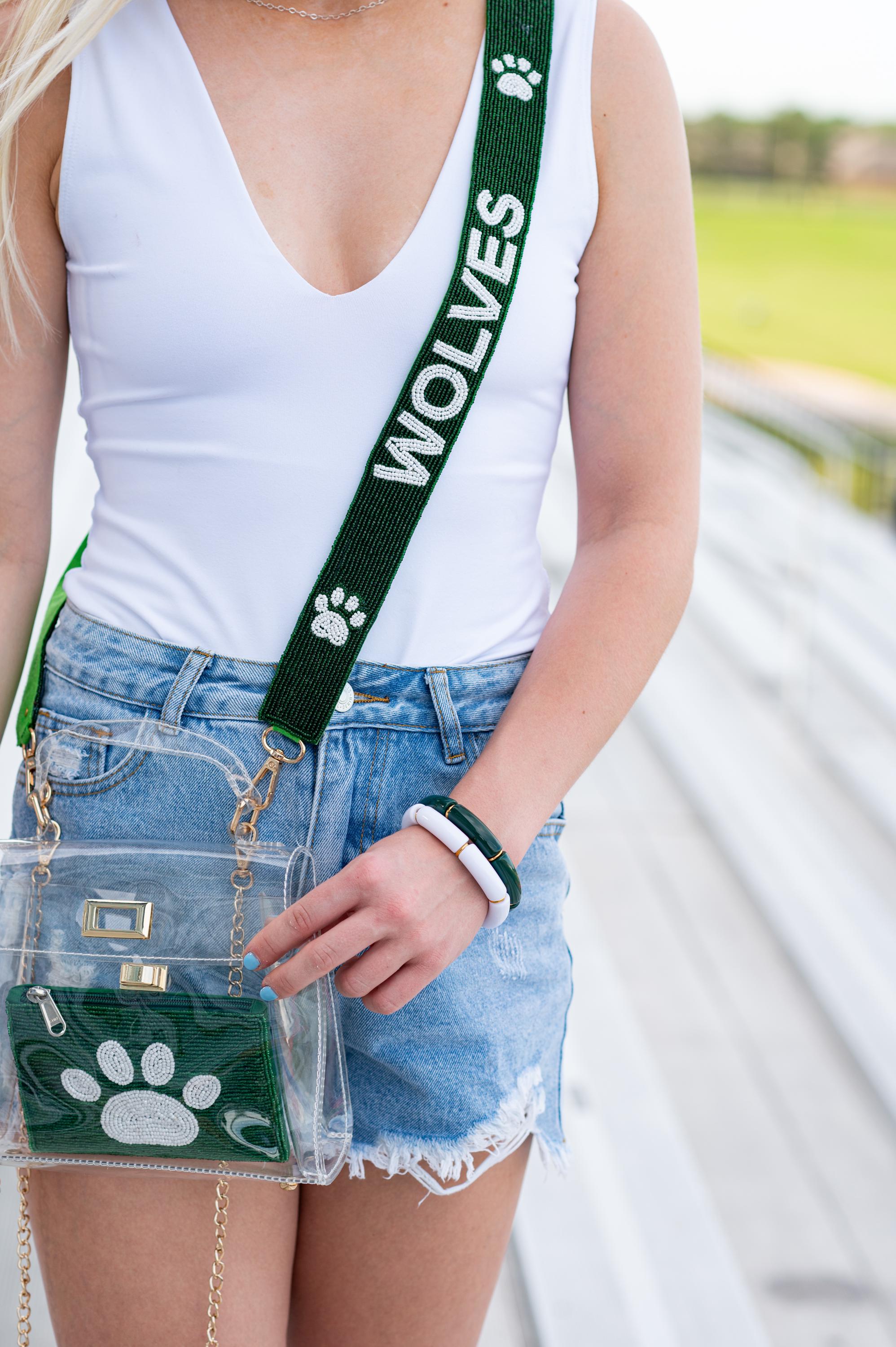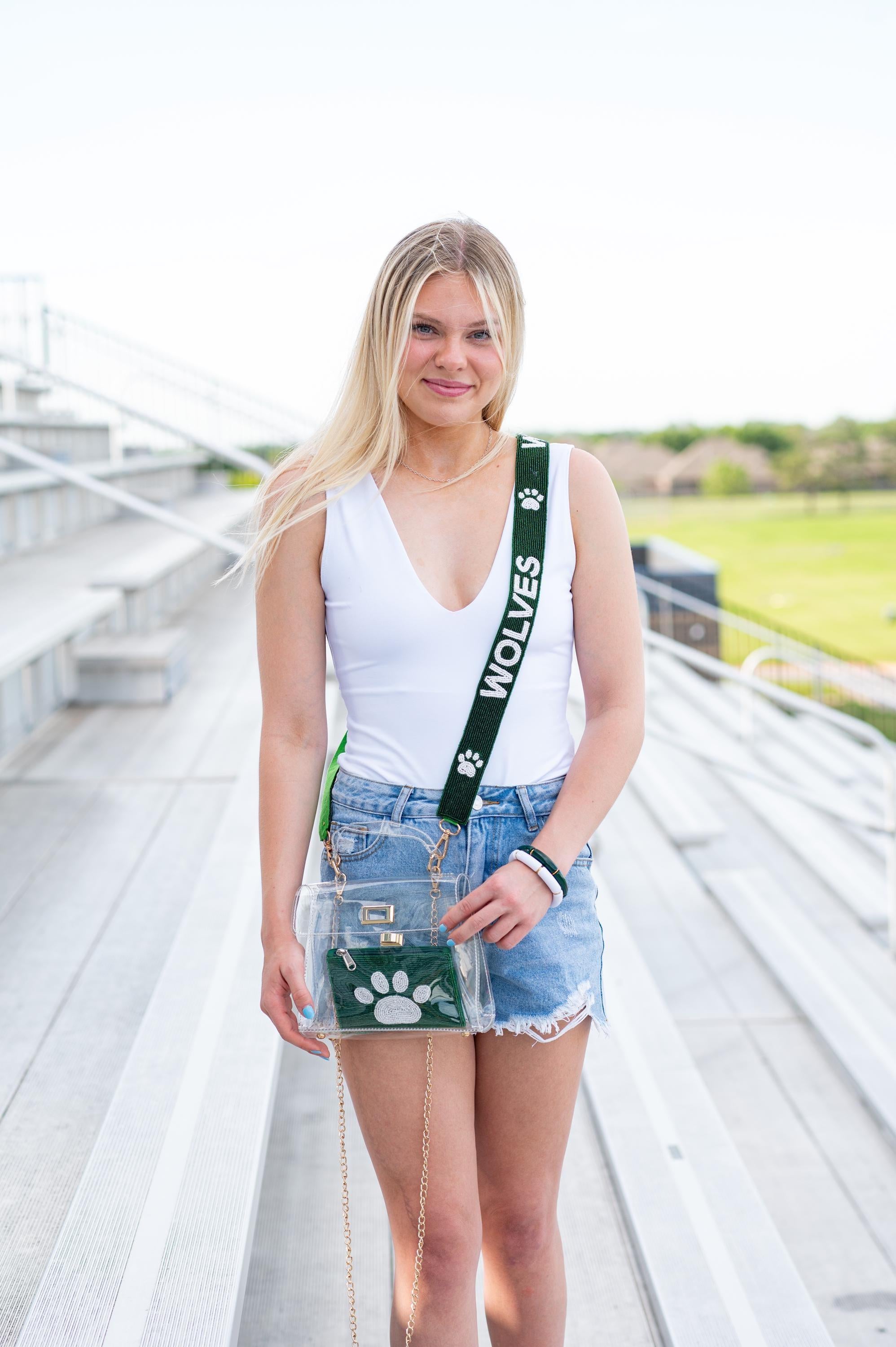 Carry your gameday essentials in this hand sewn coin purse! Perfect to show your team spirit in clear bags. Ideal for holding Ids, cash, debit/credit cards, lipstick and other lady essentials!