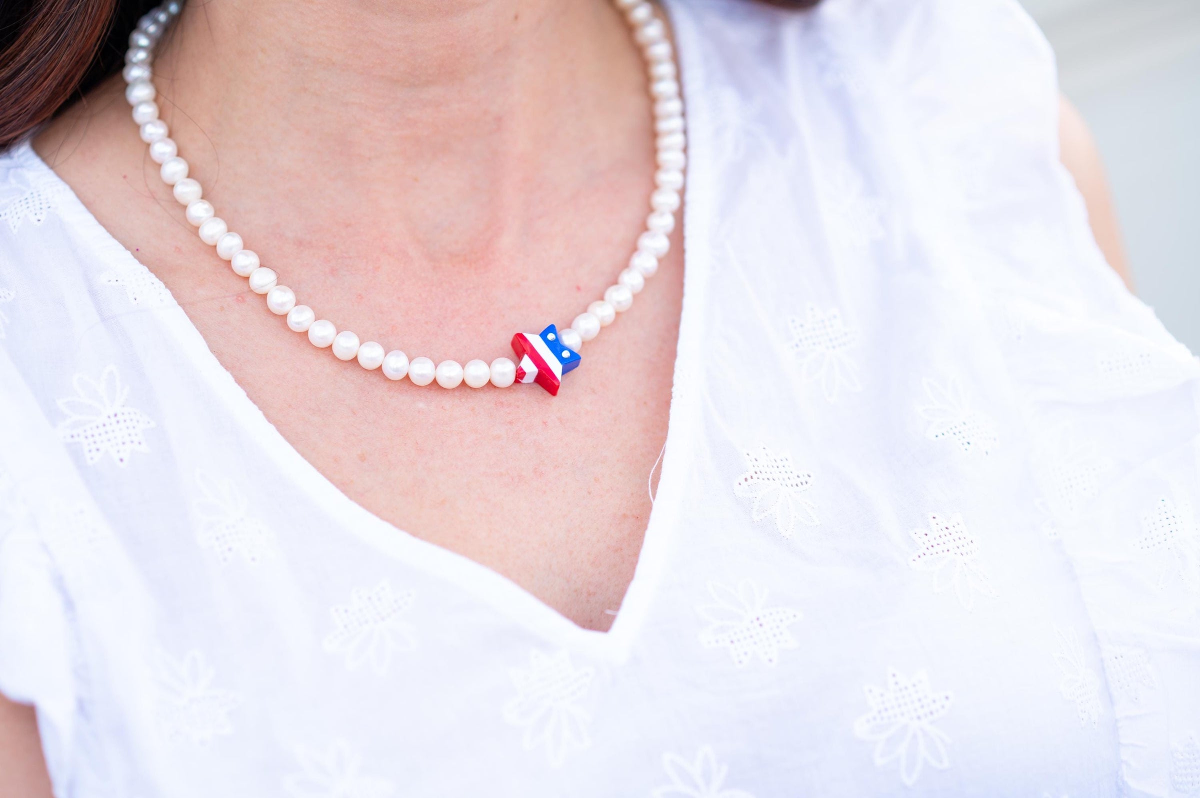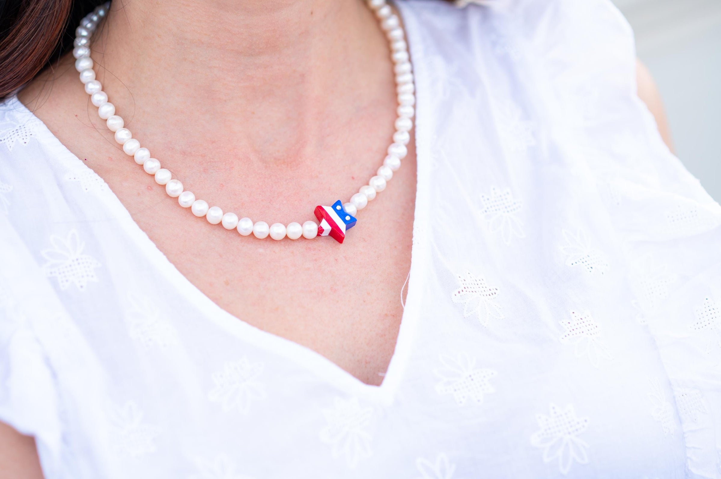 PATRIOTIC HEART & SOUL Authentic Freshwater Pearls Star Necklace
