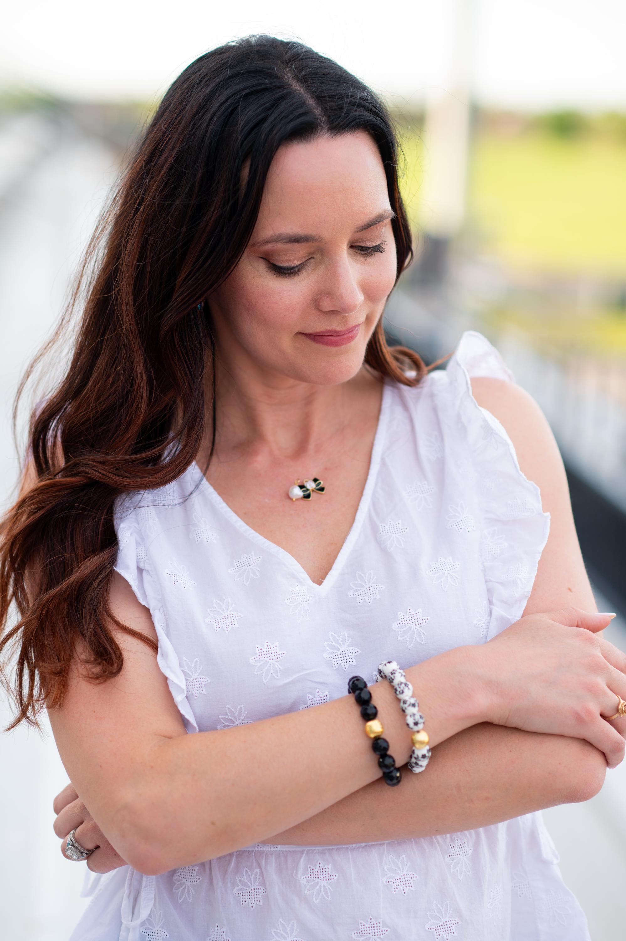Its no secret why the Alouette is adored. This natural stone bracelet will be a piece that you reach for time & time again. Make even the simplest of outfits transform into sophisticated & chic moments by adding this bracelet. The warm, matte finish of the brushed gold creates a beautiful contrast against the faceted agate beads. Stack with other prints for a bold & unique look.