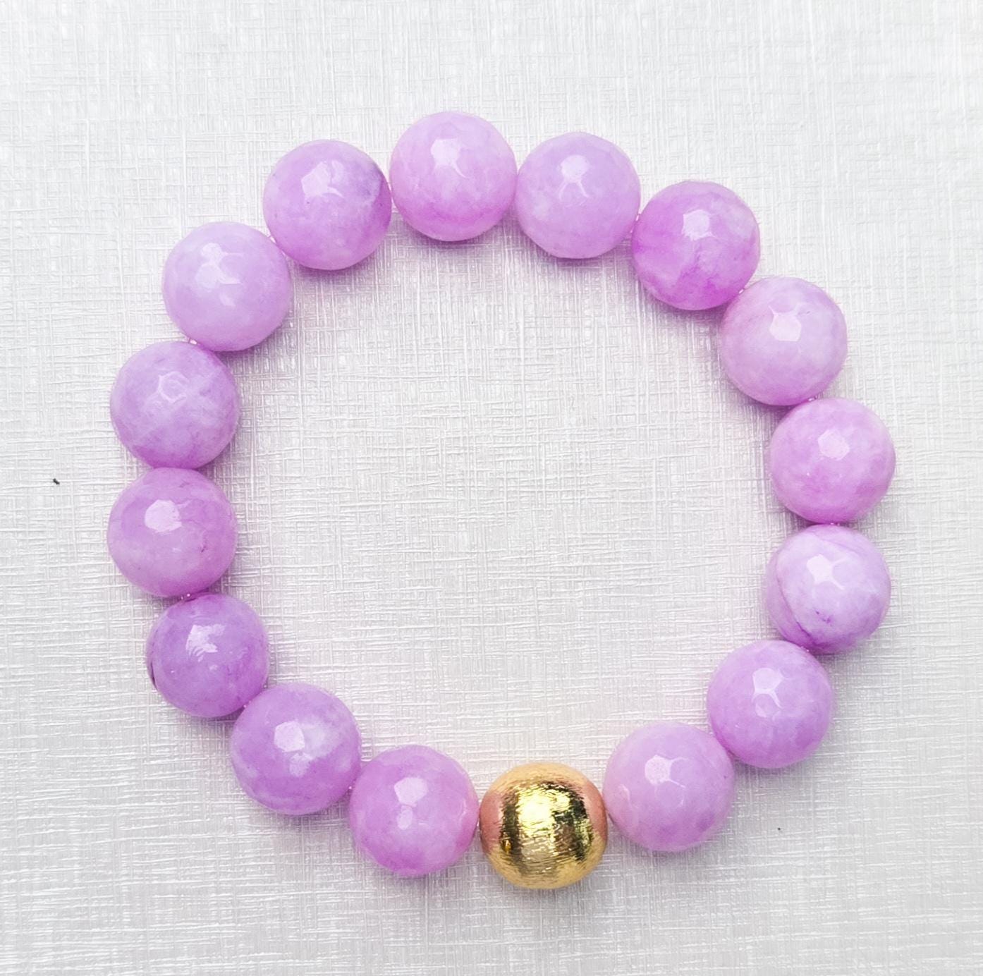 The Alouette Lilac Stone Bead Stretchy Bracelet with Brushed Gold Ball