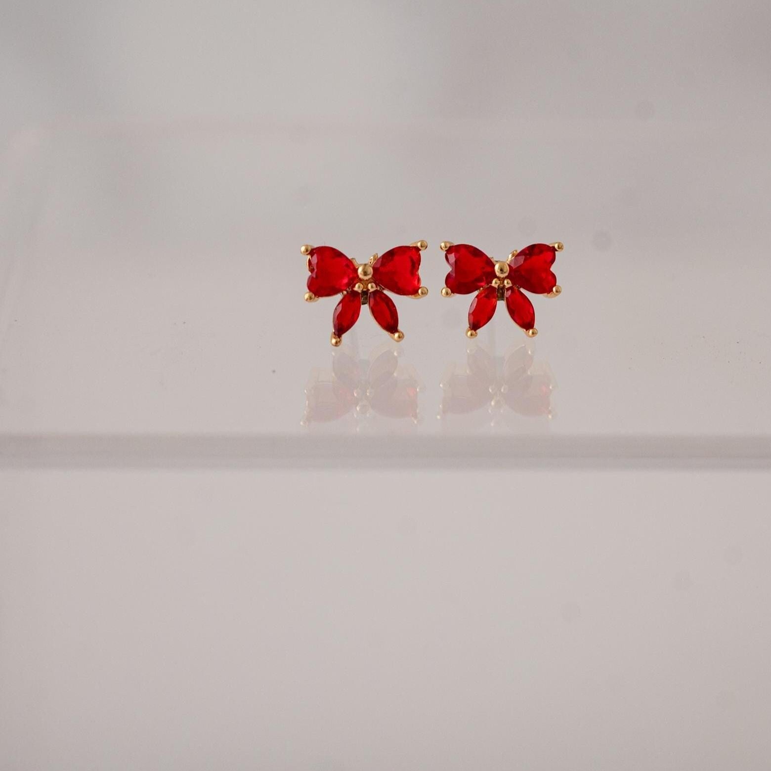 The Classic Coquette Christmas Zircon Bow Stud Earrings - Red