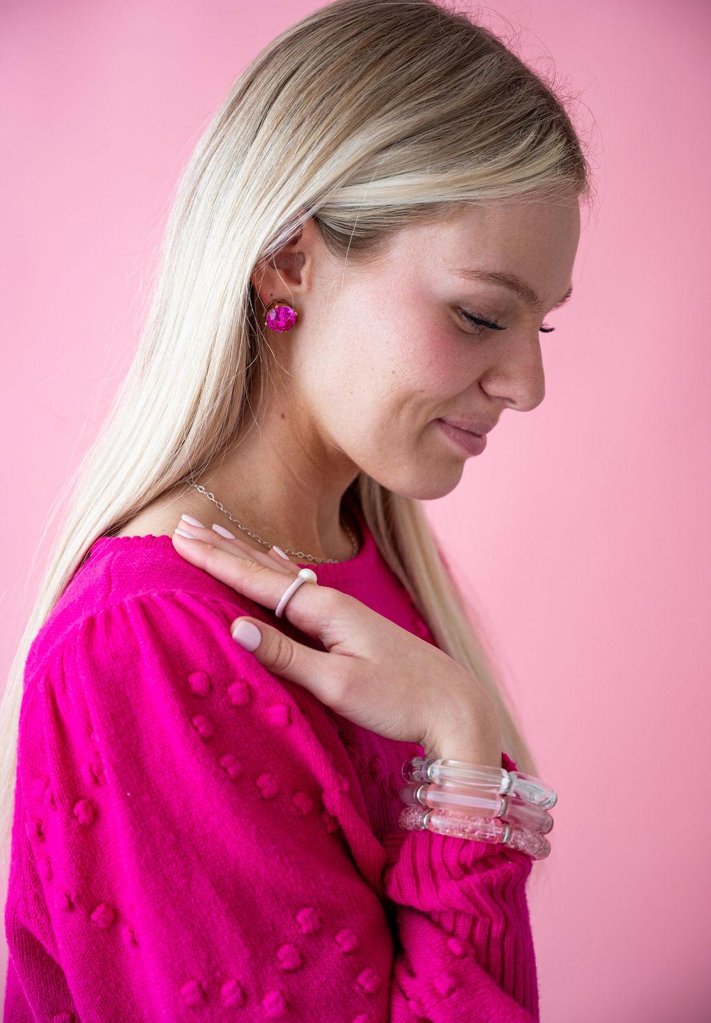The Marisol Large Statement Stud Earrings in Hot Pink