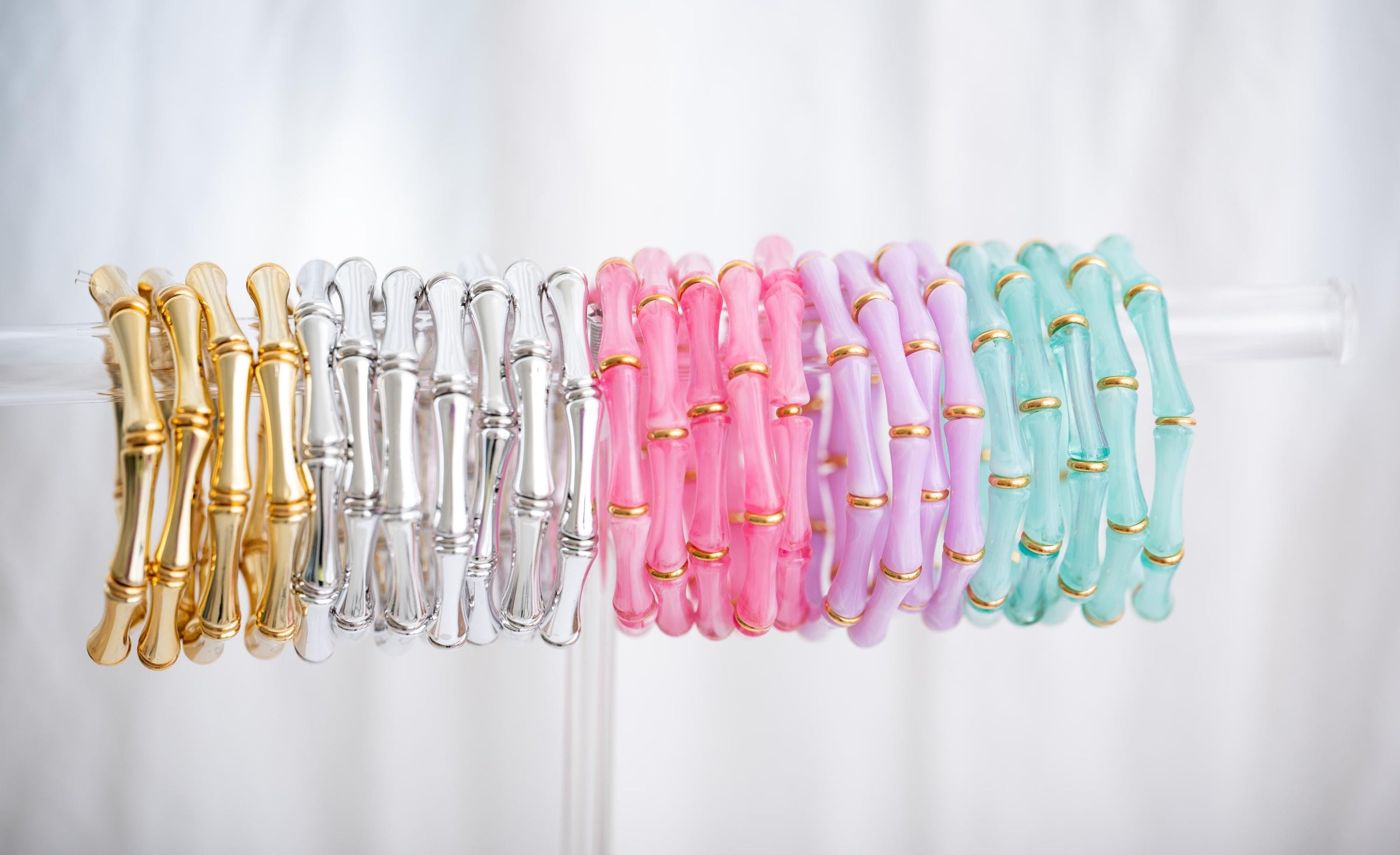 Introducing Bridgette Bamboo Bangle (in gold or silver).Bridgette is a charming nod to grand millennial style for the old soul with a playful spirit. With her vibrant colors and delicate touches of gold or silver, this bracelet is perfect for stacking and adding a pop of personality to any outfit. Whether youre dressing up for an occasion or adding flair to your everyday look, the Bridgette Bamboo Bracelet brings timeless elegance with a fun, modern twist.