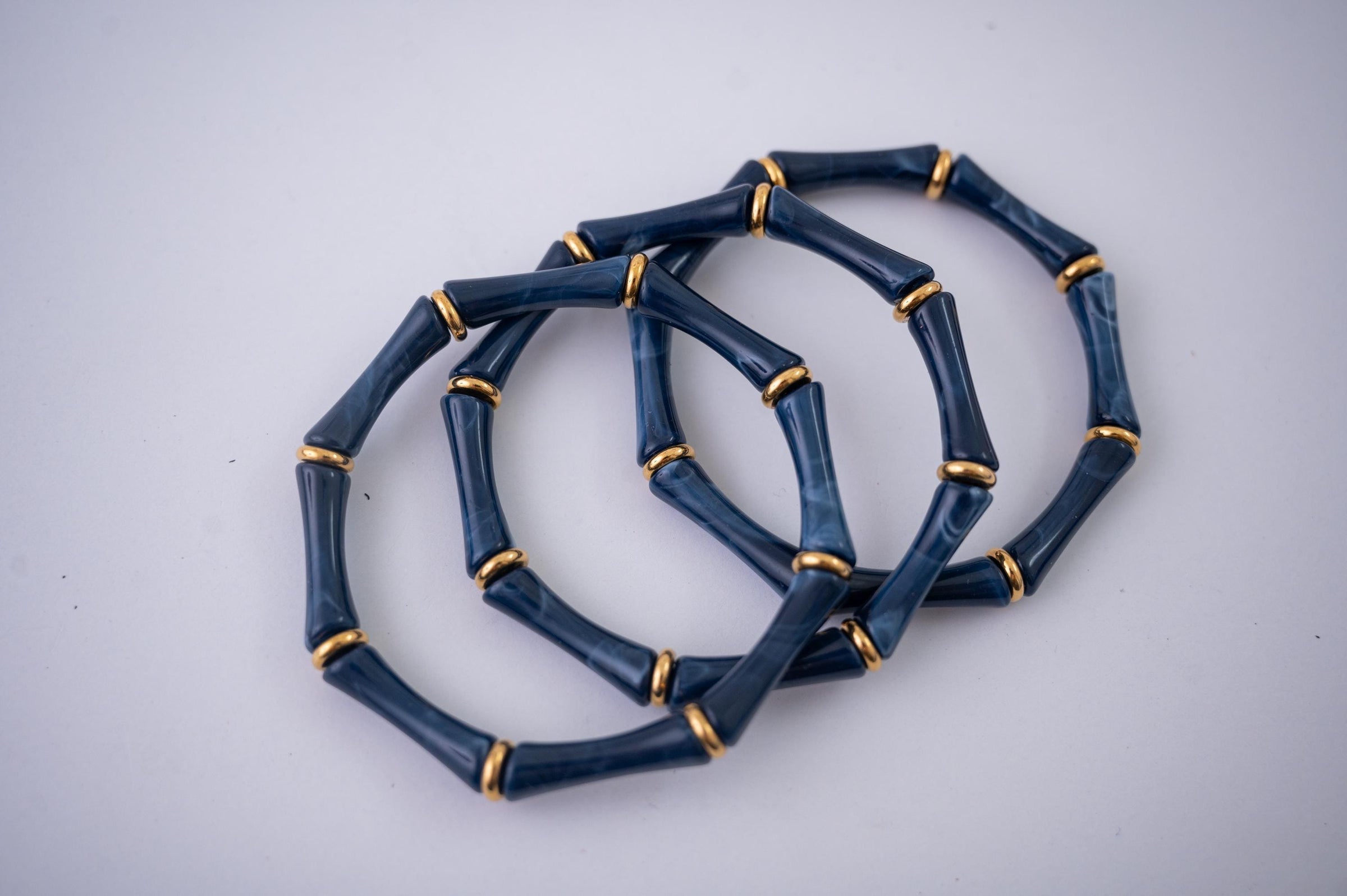 The Thin Bridgette Bamboo Acrylic Bangle Set in Marbled Navy (in Gold or Silver)
